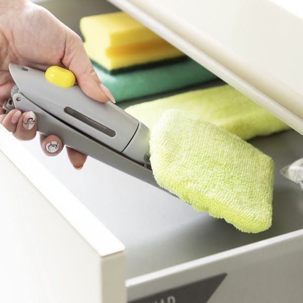 Αυτό το καινοτόμο καθαριστικό τζαμιών είναι πολύ εύκολο στη χρήση, απλά πρέπει να ξεδιπλώσετε τη λαβή και να ανοίξετε το καπάκι στο άκρο του για να το γεμίσετε με νερό ή υγρό για τον καθαρισμό των παραθύρων. Διαθέτει ένα κουμπί για να πατήσετε για να ψεκαστεί και ένα άλλο κουμπί για να διπλώσετε τη λαβή προς τα πίσω.